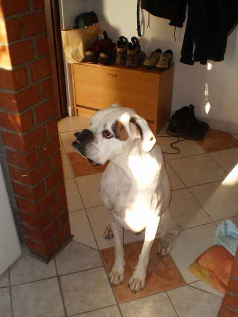 Judy, a másik éltes, inkontinens boxerünk sajnos nincs túl jól. Úgy tűnik, hogy agyvérzést kapott a napokban.